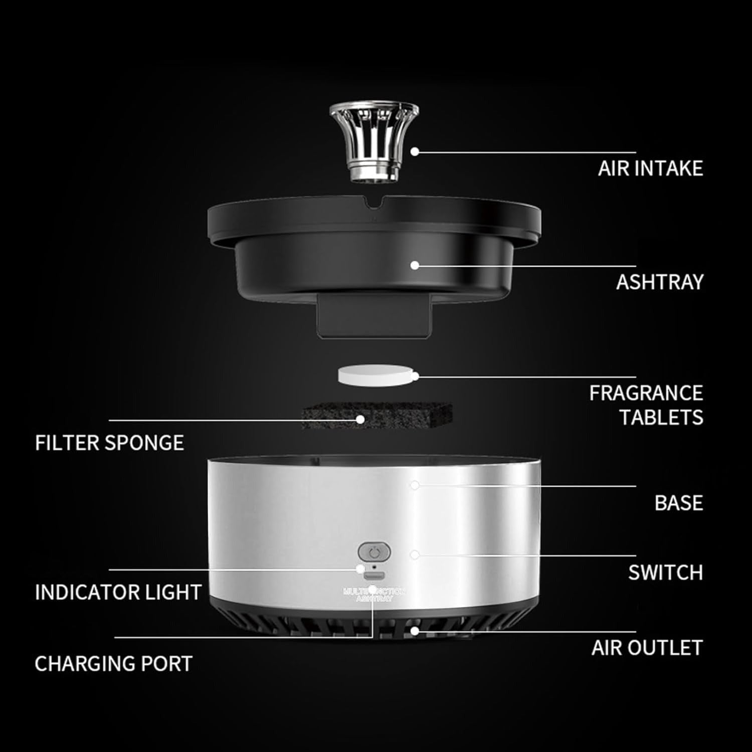 Gefertigt aus hochwertigem Kunststoff und elektronischen Komponenten, ist der Aschenbecher leicht, langlebig und einfach zu reinigen.