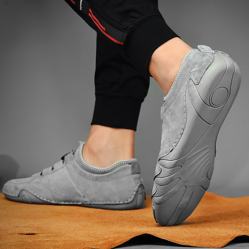 Geben Sie dank der Wildledersportschuhe unserer Männer Wildleder in den raffinierten Stil in Ihre Sportgarderobe ein. Diese Schuhe wurden für einen aktiven Mann entwickelt und kombiniert ein hochwertiges, weiches Wildleder -Finish mit einem innovativen flexiblen Befestigungselement, das das schnelle Anziehen und Abnehmen und eine perfekte Passform garantiert. Stylische Grau- und Beige -Farbtöne und subtile Nähen fügen Klassen hinzu, und die profilierte Sohle bietet den ganzen Tag über Unterstützung und Komfort. Ob für ein Wochenendabenteuer oder ein tägliches Training, diese vielseitigen Schuhe sind ideal für alle, die nach der perfekten Kombination aus Funktionalität und modischem Erscheinungsbild suchen.